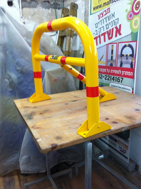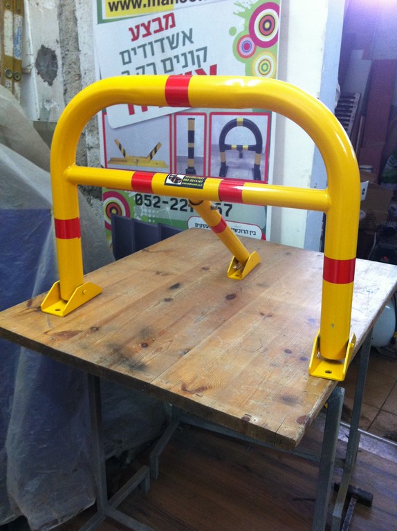 מחסום חניה מסיבי ברוחב כ-70 ס"מ , העשוי מצינור מתכת מגולוון בקוטר "2 צול ,