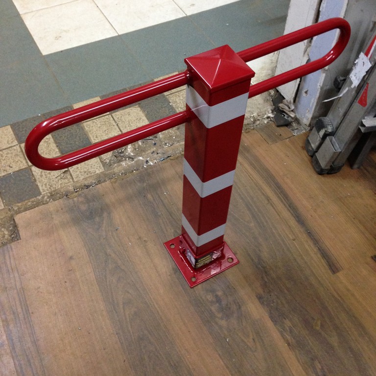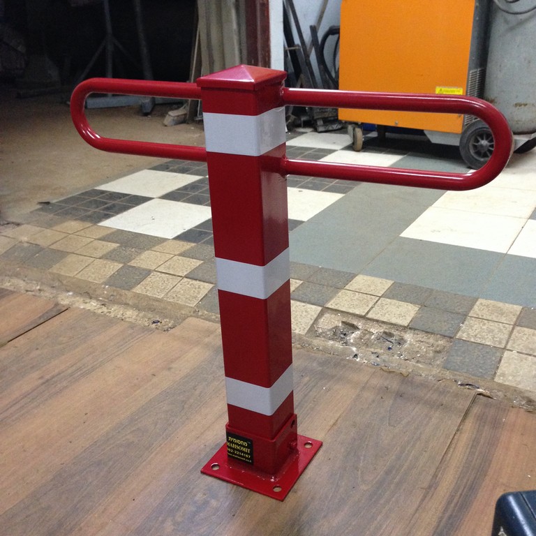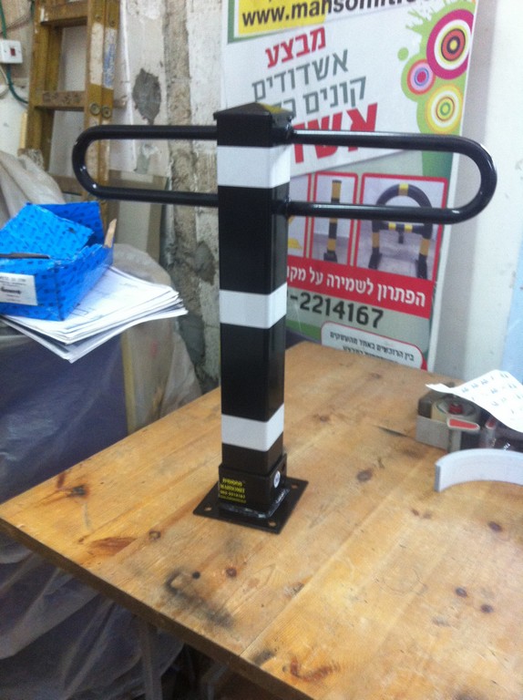עמוד חניה מסיבי עם כנפיים בצדדים לשמירת מקום החניה .