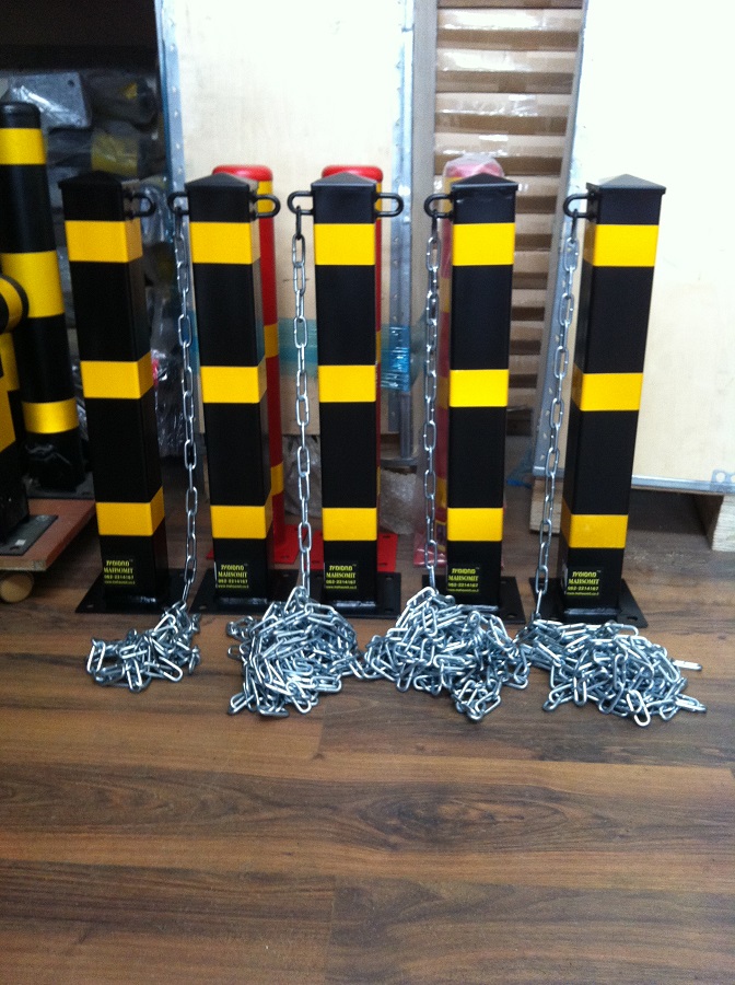 עמוד חניה קבוע עם שרשרת הניתנת למתיחה עד הקיר הקרוב או עד עמוד אחר.
